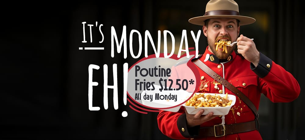 Terms and conditions. Available all day every Monday in Rogues Sports Bar from Monday 3 November 2025 until Monday 2 February 2026. Poutine Fries for just $12.50. A financial Membership Card must be swiped or used at time of placing order to activate offer. Cannot be used in conjunction with any other offer.